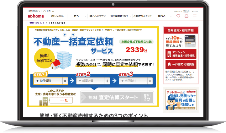 国内最大級の「アットホーム不動産情報ネットワーク」につながる